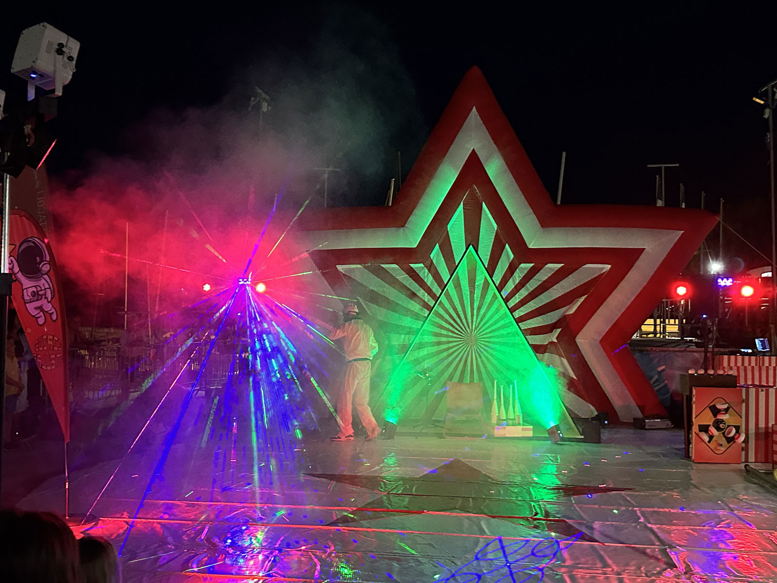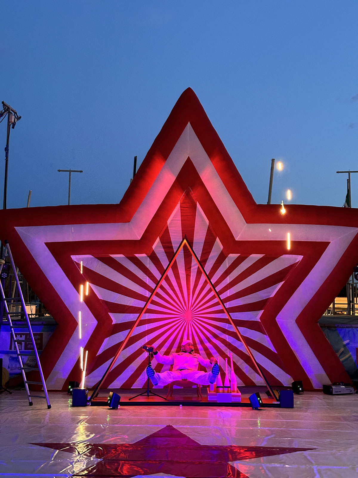 Preparatevi a decollare per un viaggio fuori dall’ordinario, dove il circo attraversa il cosmo! Un astronauta un po’ stralunato, in cerca di vita intelligente nell’universo, si ritrova a fluttuare tra pianeti colorati, satelliti impazziti e scenografie spaziali mozzafiato.