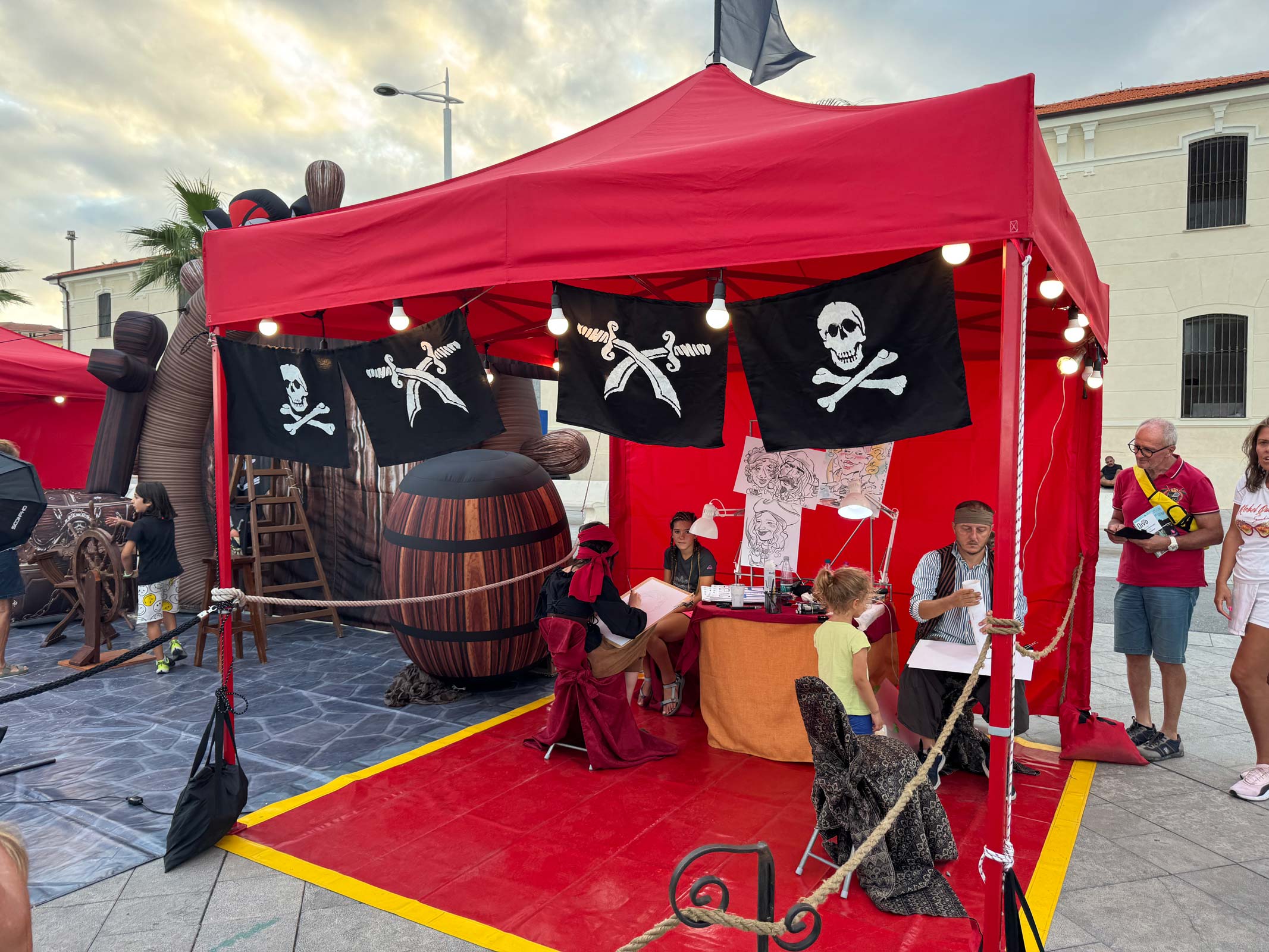 Non mancano le attività dedicate alle famiglie: i Truccatori del Drago trasformano i volti in personaggi fantastici, animali e mostri marini, mentre il Corsaro delle Caricature ritrae il pubblico con ironia e creatività, lasciando un ricordo unico della serata. I Giochi del Corsaro, interamente costruiti in legno, invitano bambini e adulti a mettersi alla prova con percorsi di equilibrio, torri da costruire e giochi di abilità.