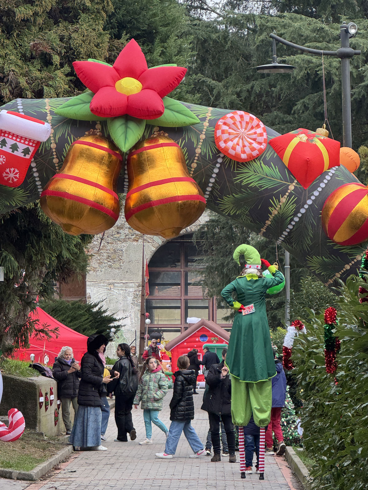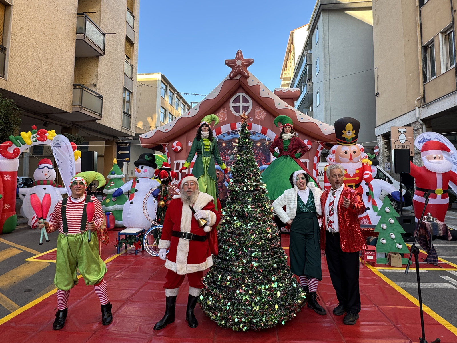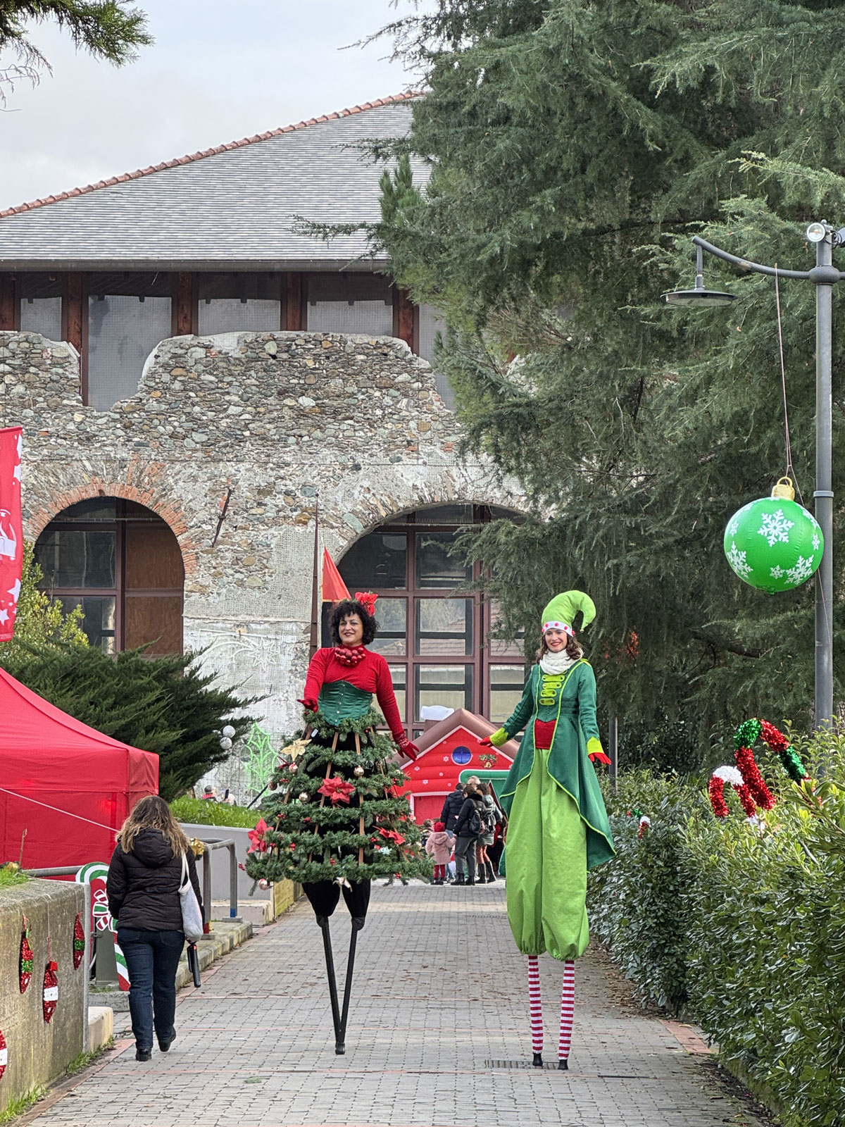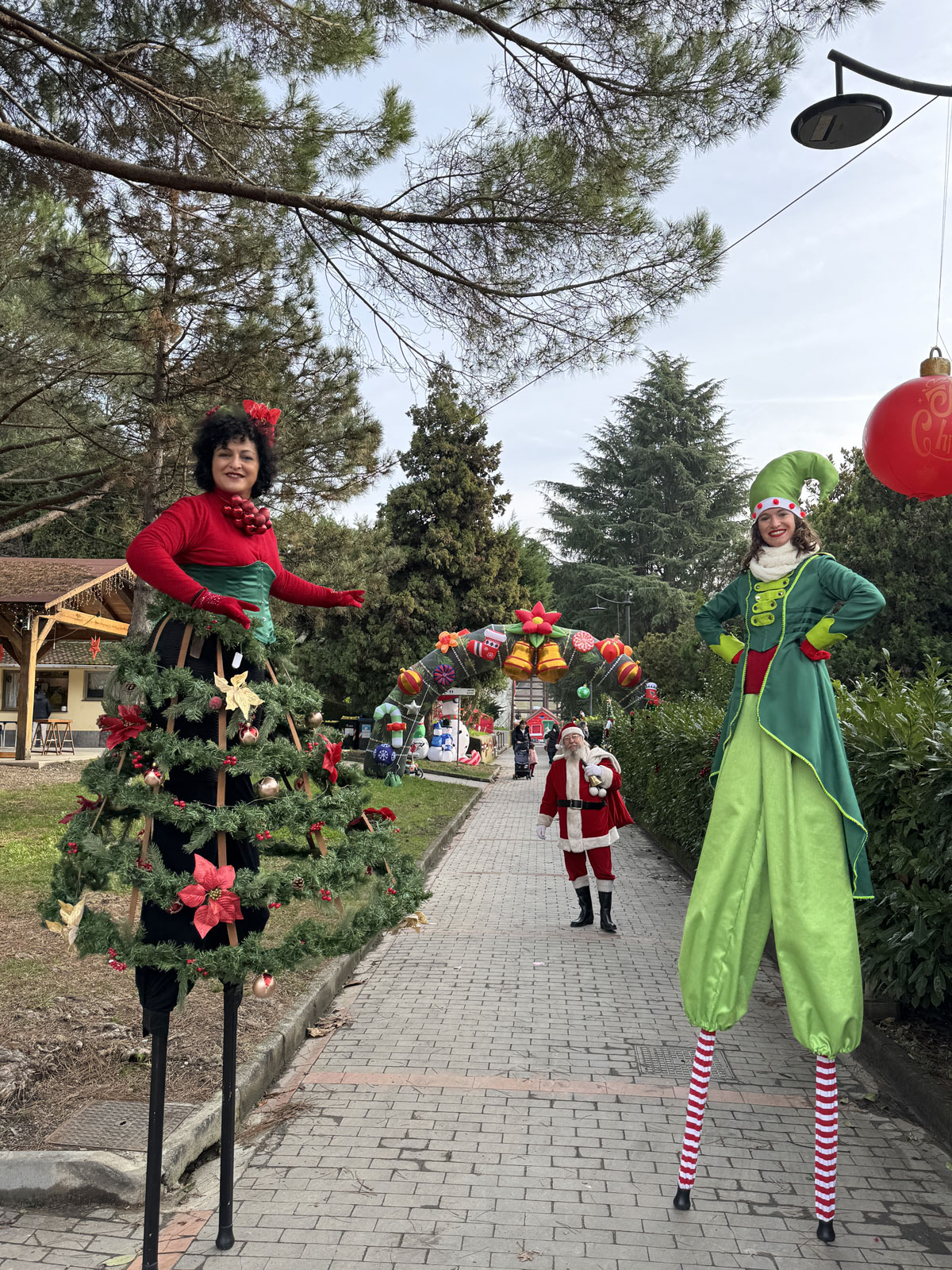 accoglienza ospiti con folletti trampolieri, renne danzanti e alberi di Natale viventi;
