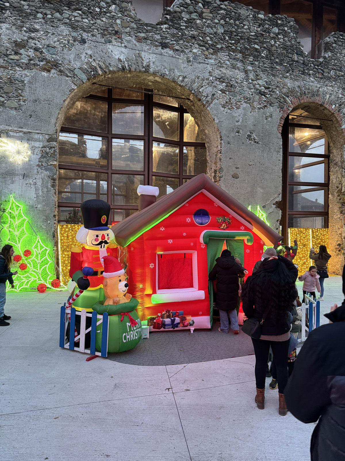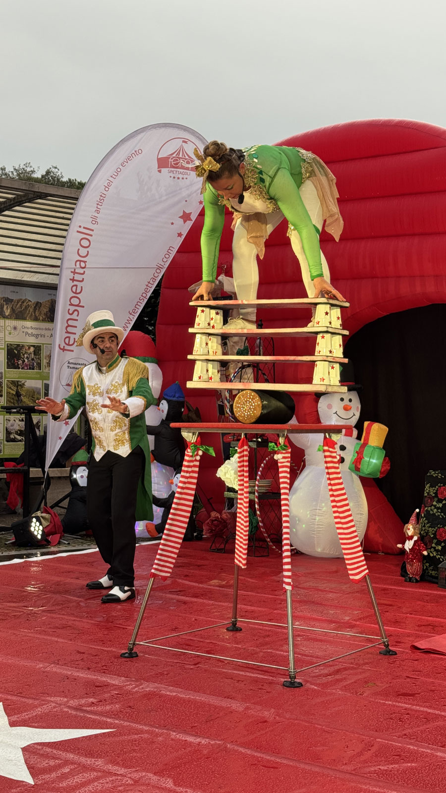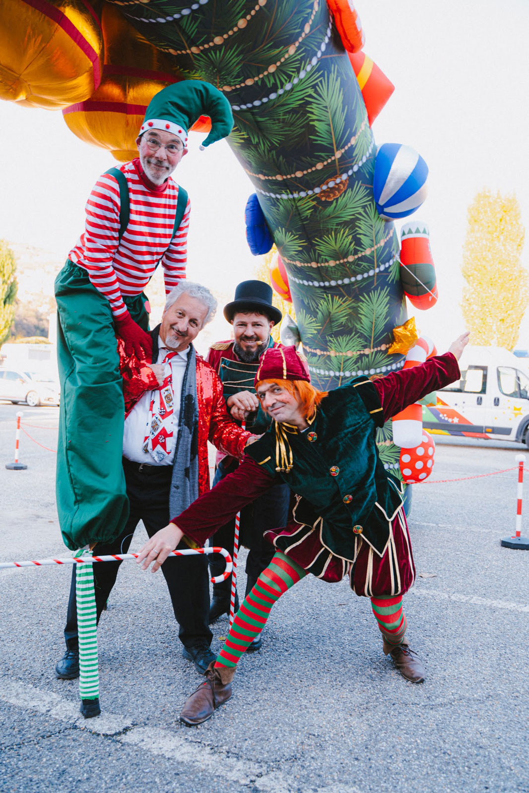 accoglienza ospiti con folletti trampolieri, renne danzanti e alberi di Natale viventi;