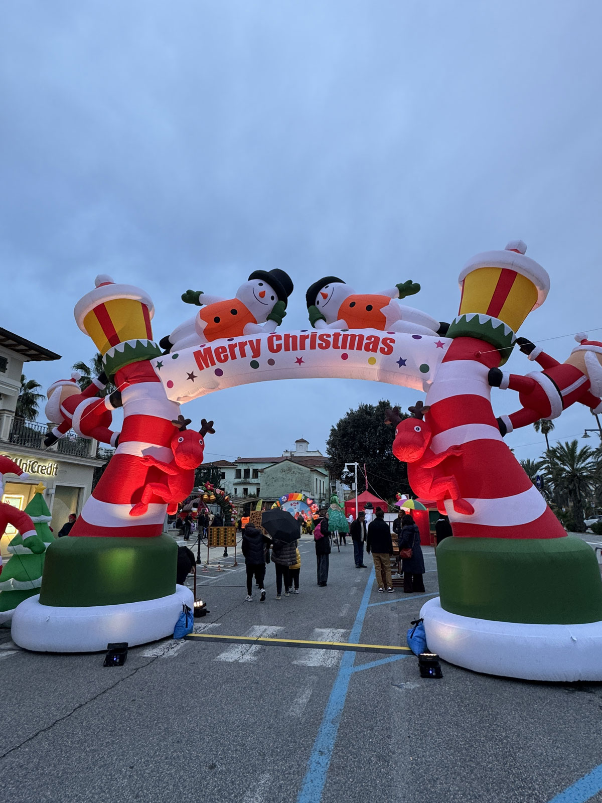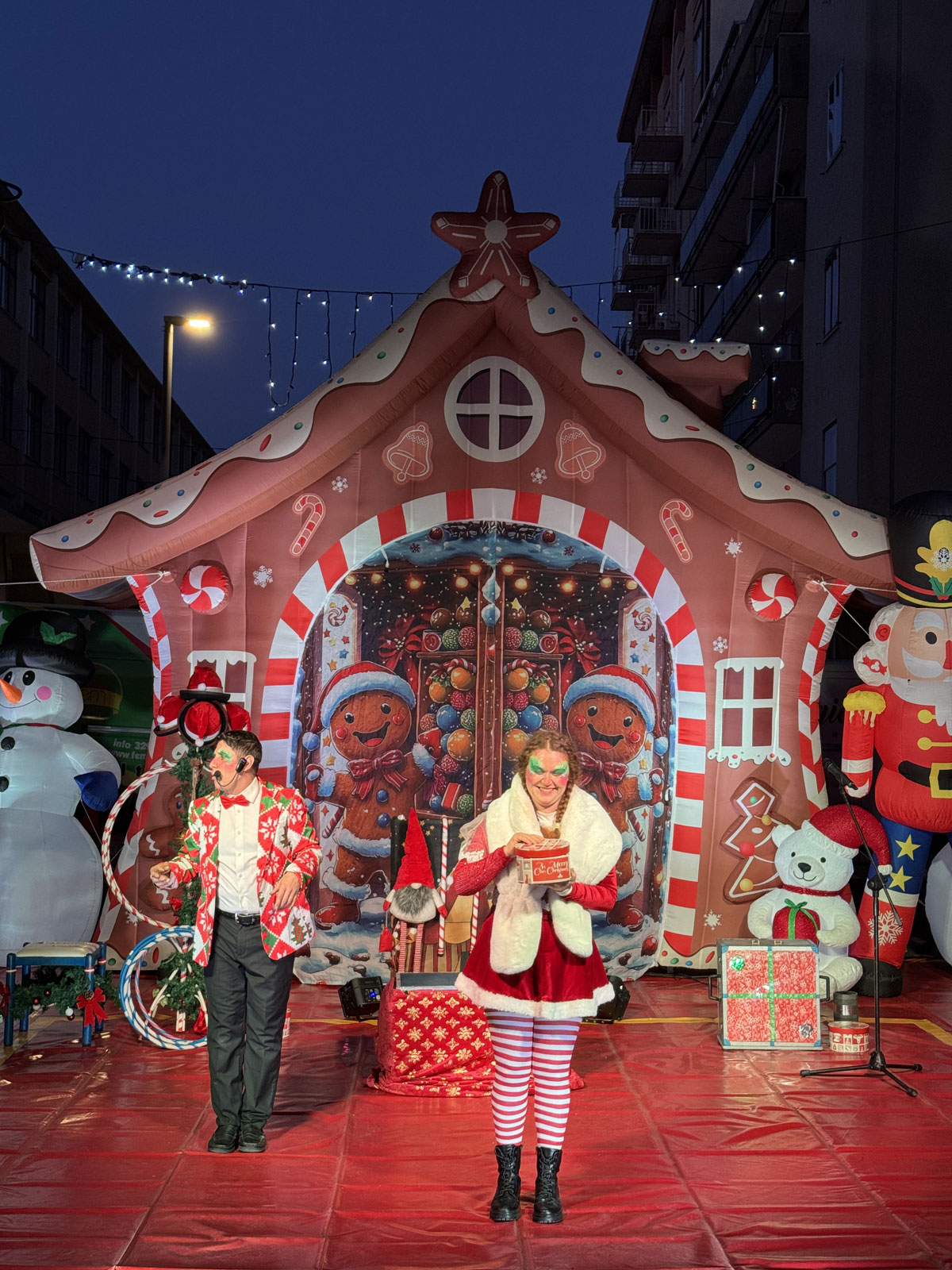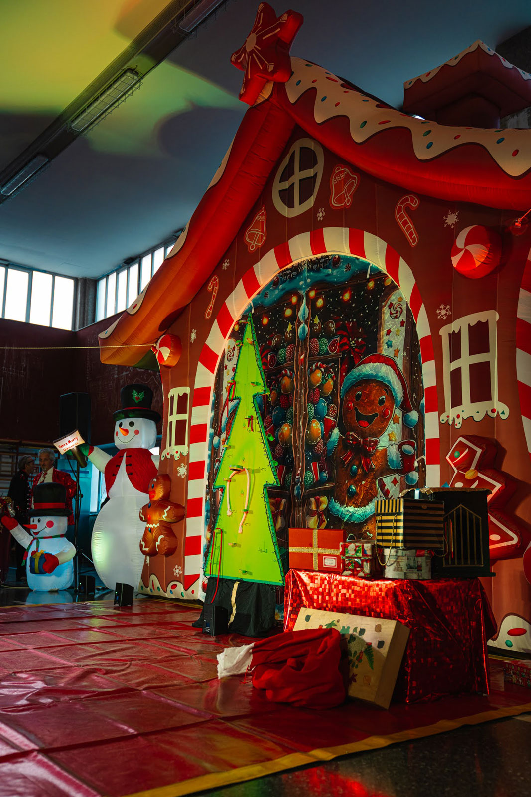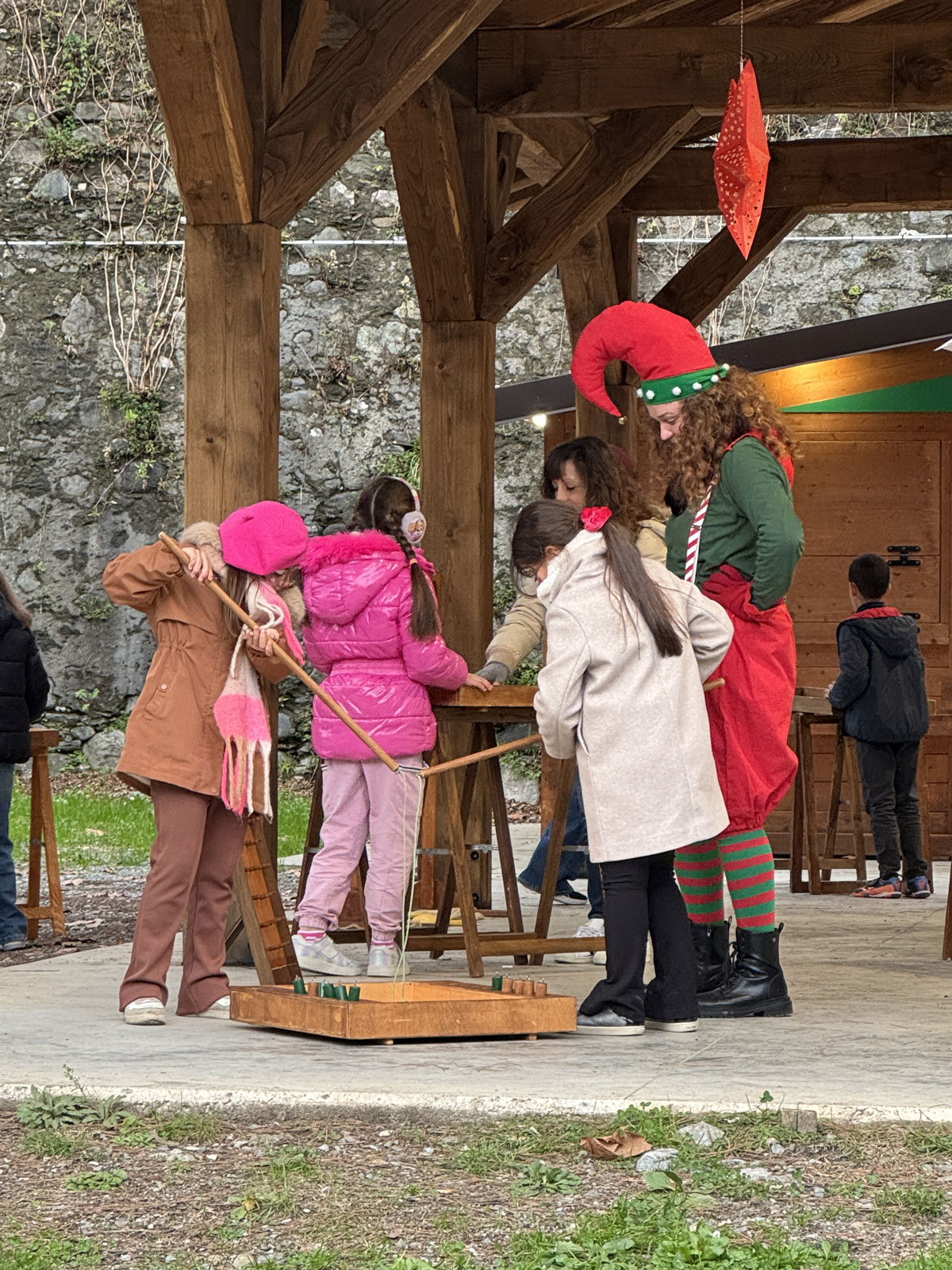 accoglienza ospiti con folletti trampolieri, renne danzanti e alberi di Natale viventi;
